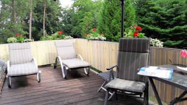 Balkon: 2 Relaxliegen, Tisch und Stühle