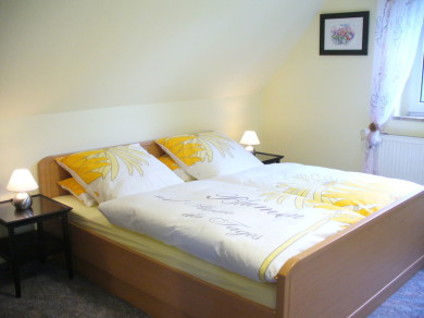 Schlafzimmer: ausgestattet mit einem Doppelbett, Kleiderschrank, Stühle usw