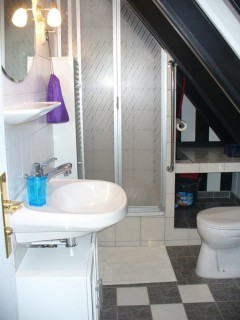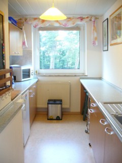 Küche: Gasherd mit Backofen, Mikrowelle, Wasserkocher, Kaffeemaschine, u. v. m.